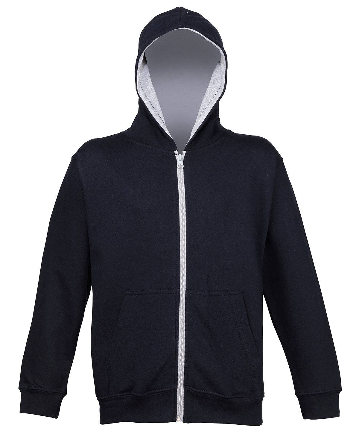 Neu French Navy/Heather Grey - College-Kapuzenpullover für Kinder
