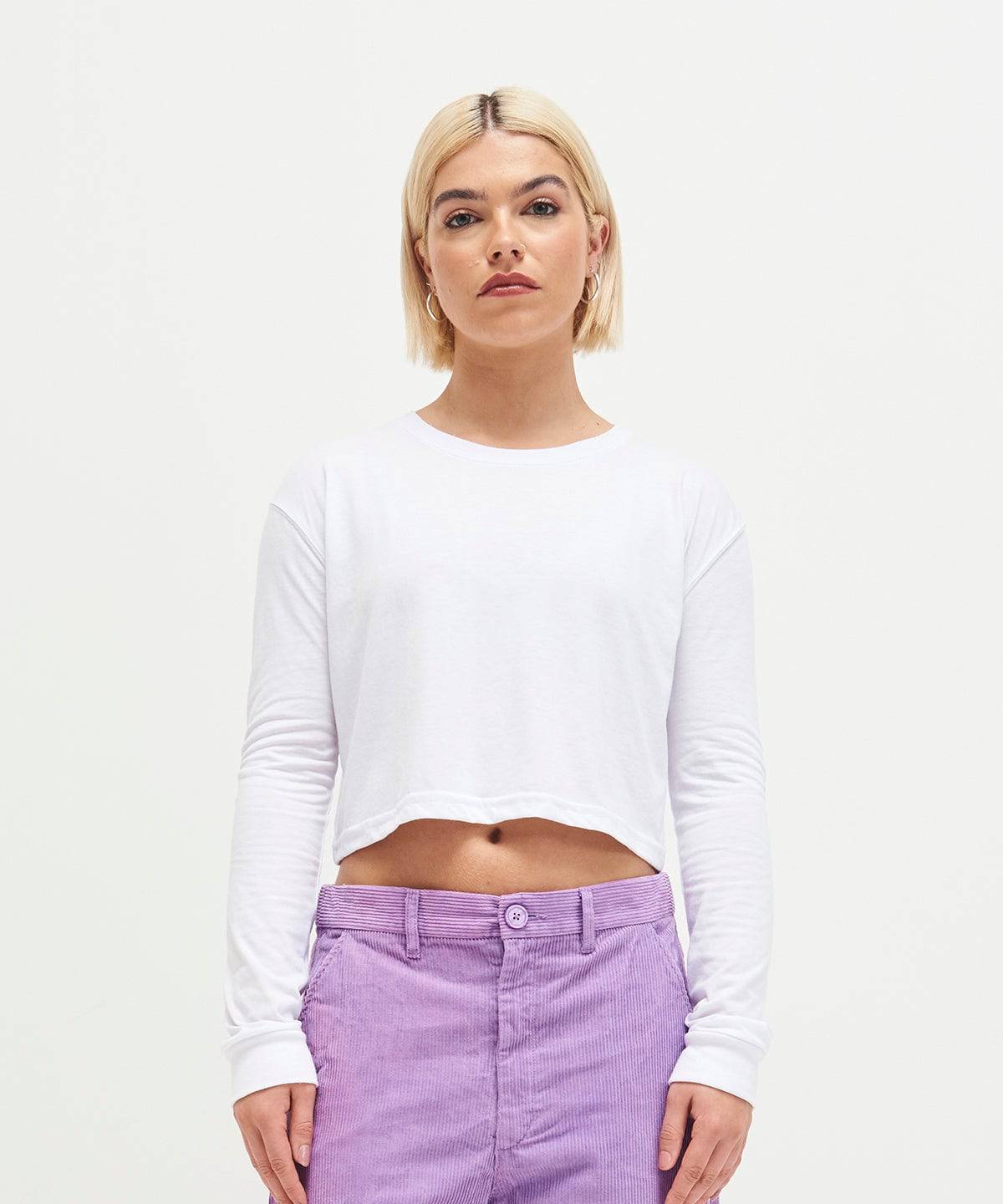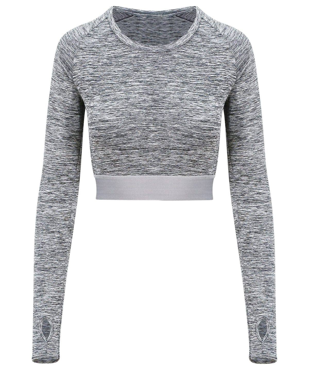 Grey Melange - T-shirt court à manches longues pour femme